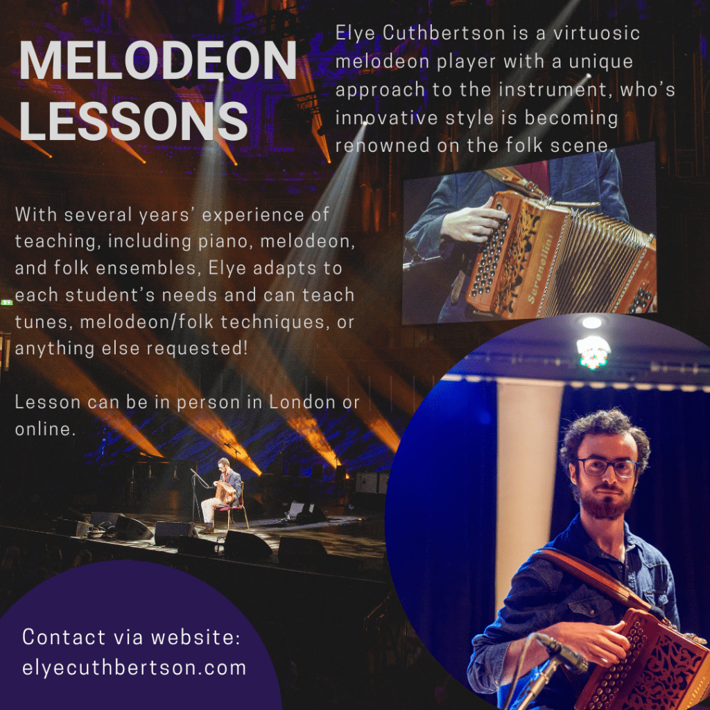 I offer piano lessons (beginner – Grades 1-2), melodeon lessons, and folk music lessons (any level, any instrument). As well as having a distinction in Grade 8 piano, my vast folk music experience has proven useful in teaching children piano because playing by ear is more engaging and encourages children to be enthusiastic about music. I have been teaching piano and melodeon privately for several years, have led melodeon and folk music workshops for groups of young people and adults, and have taught several folk ensembles in London. I am passionate about sharing my unique approach to the melodeon and folk music.